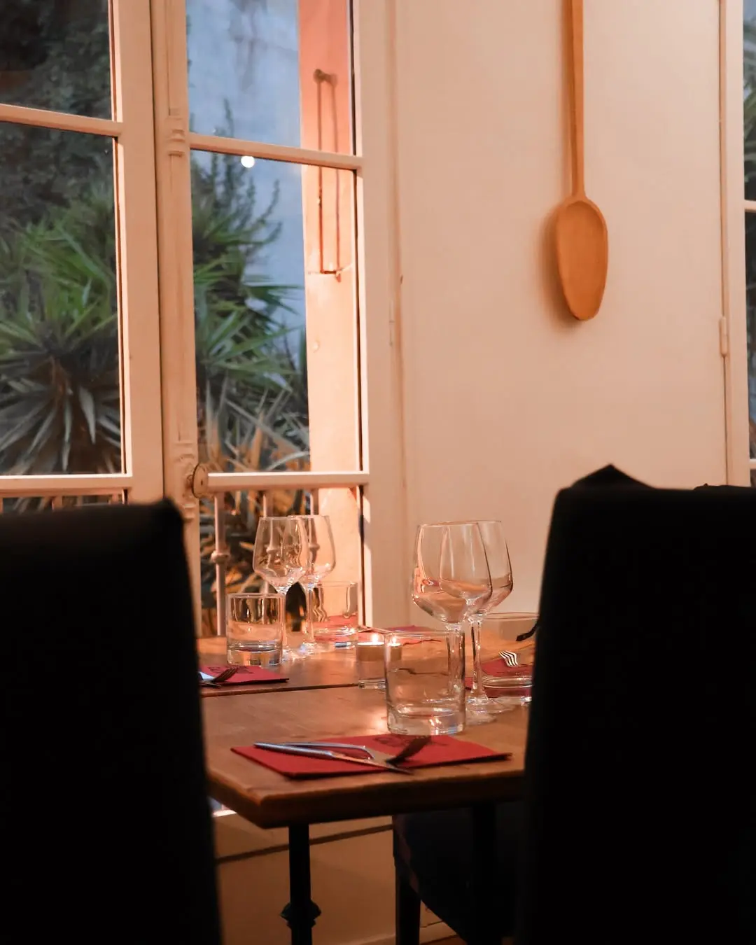 À l'intérieur, installez vous dans le cadre chaleureux et raffiné d'une ancienne bâtisse perpignanaise. Aux beaux jours, notre terrasse nichée dans les ruelles du quartier historique vous invite à savourer le moment en plein air, entre pierres anciennes et douceur méditerranéenne.